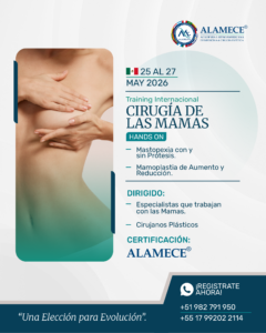 ALAMECE ha diseñado un curso completo de jornada quirúrgica intensiva full inmersión con diferentes cirugías como: Mastopexia con prótesis y colgajo muscular, Mastopexia sin prótesis y Mamoplastia de reducción y aumento.